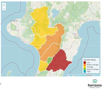 According to the Horizons Dry Weather Summary, the Tararua District has so far only had 67% of average rainfall over the past four months and “is currently experiencing drier than average weather”. The summary also states that “across the Tararua District total rainfall between 1st of September 2024 and 5th of December 2024 are lower than for the same period last year and during the last dry event in 2013. The rainfall totals are comparable to the 2020 dry event.”